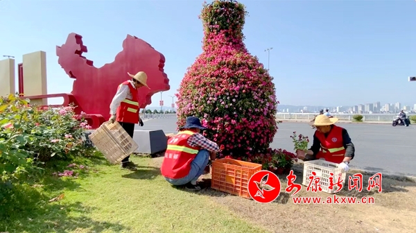 近日,市市政園林工人正在安康一橋北頭、西津漢江大橋南頭、東壩漢江大橋北頭交通島、市委廣場、博物館等重要點位清除枯萎壞死的花草,挖坑補栽、澆水填土。市市政園林處綠化管護科負責人介紹,截至目前,已栽種和擺放好的孔雀草、牽牛花12萬株,他們還將繼續對天橋花箱、雷神殿十字花壇等17處重要點位進行各類時令花卉擺放、栽種,共計擺放花箱1366個、栽種時令花卉約55萬株。