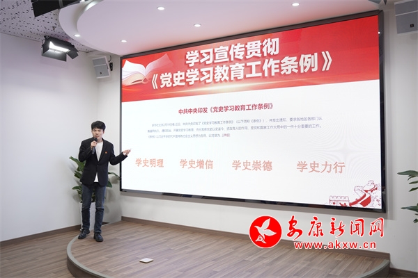 活動中,市委黨校青年教師分享《中國共產黨陜西安康歷史》第一卷(1921-1950),講述新民主主義革命時期的安康黨史,通過情景演繹再現安康紅色革命歷史中的英雄人物,從紅色文化遺存、革命先輩感人事跡中闡釋中國共產黨初心使命,引人深思、催人奮進。