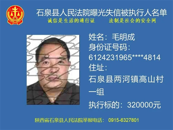 為了進一步加大執行力度,保障勝訴當事人的合法權益,推進社會誠信體系建設,依照《中華人民共和國民事訴訟法》《最高人民法院關于公布失信被執行人名單信息的若干規定》等法律、司法解釋的有關規定,現對一批已進入執行程序,且尚未全部履行義務的被執行人進行媒體曝光,歡迎廣大群眾支持石泉縣人民法院的工作,向我院提供被執行人的財產線索,使生效法律文書能夠得到切實執行,讓人民群眾切實感受到公平正義就在身邊。