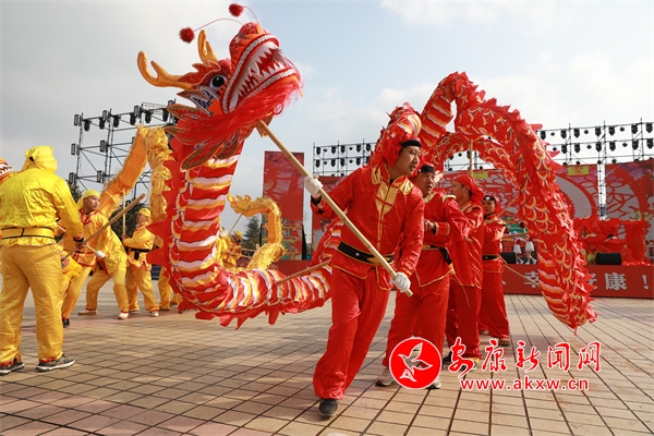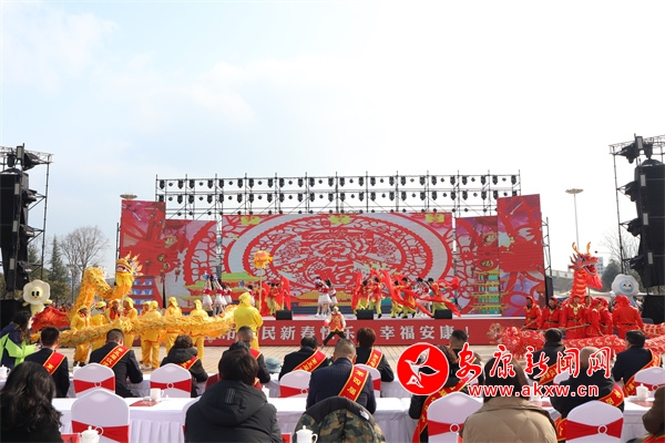 在金州廣場,身著各色演出服裝的演出隊伍早早就來到了現場為表演做準備,隨著一聲鑼鼓敲響,開場舞蹈《盛世歡歌》拉開活動序幕,花鼓表演唱《花為媒》、女聲合唱《火火的中國》、少兒舞蹈《百花舞》、戲曲聯唱《新春納福唱二黃》、漢調二黃歌舞《非遺賀新春》等節目陸續上演,營造起了濃濃的節日氛圍。演員們踏著喜慶的鼓點,和著歡快的節拍舞動起來,現場彩龍飛舞,雄獅翻騰,盡顯傳統民俗文化魅力。市民們大飽眼福,紛紛用鏡頭記錄下了各種精彩瞬間。