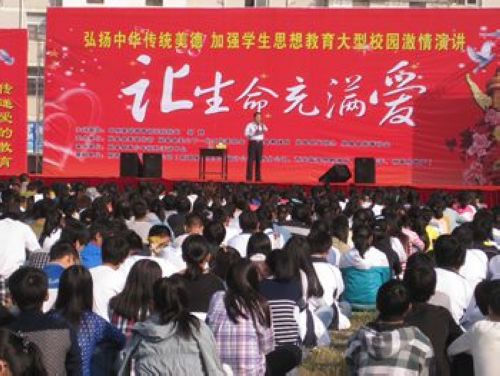 10月10日,由縣委宣傳部、嵐皋縣關心下一代工作委員會、縣教體局、縣文明辦、縣慈善協會聯合舉辦的“讓生命充滿愛”大型校園激情演講活動在我縣體育場隆重舉行!