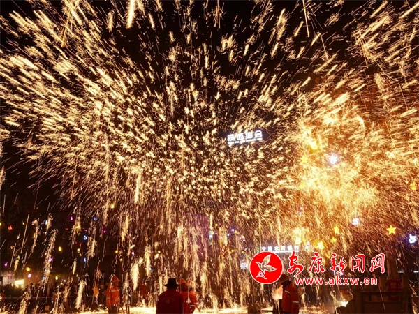 19:30,在寧陜縣中心廣場(chǎng),伴隨著鏗鏘有力的鑼鼓聲,寧陜縣傳統(tǒng)文化活動(dòng)表演開(kāi)始。舞獅、陜南花鼓、民間小調(diào)等傳統(tǒng)民俗節(jié)目輪番上演,為現(xiàn)場(chǎng)群眾送去了豐富的民俗文化大餐。而在傳統(tǒng)文化表演中,最吸引人的是打鐵花,只見(jiàn)表演者將提前加熱好的鐵水猛力擊打,絢爛的鐵花在空中綻放,放眼望去,一串串耀眼的鐵花在空中散開(kāi),猶如煙花綻放,又似流星滑落,令人驚艷。