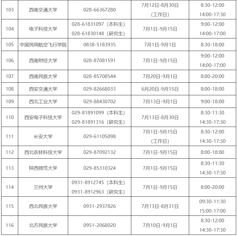 各省(自治區、直轄市)和中央部門所屬高校同步開通了熱線電話,電話號碼與開通時間可查看匯總表。