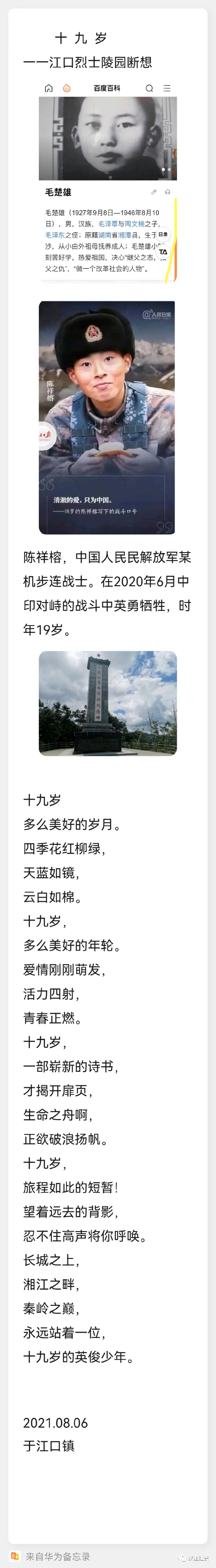 時間帶不走一顆永遠向上的心,一代人終將老去 ,但 總 有人正年輕。遙望遠方的光芒,腳下自有力量。時代在進步,民族在振興,青年 任重而道遠。不忘初心,政治 鑄魂,傳承紅色基因,年輕人才會沿正確的方向前行。一百年以前,魯迅曾說過"愿中國青年都擺脫冷氣,只是向上走,不必聽自暴自棄者流的話,能做事的做事,能發聲的發聲。有一分熱,發一分光。就令螢火一般,也可以在黑暗里發一點光,不必等候炬火。此后如竟沒有炬火,我便是唯一的光。”一百年來,螢火終成火炬,千萬青年的光和熱照耀溫暖了這個世界。光明在前,理想存胸,任山高路遠,總有人為此而往!誰也不會忘記這十九歲的青春。